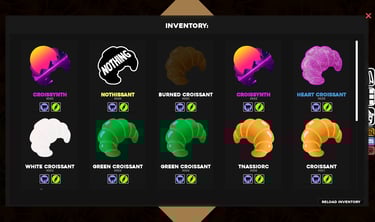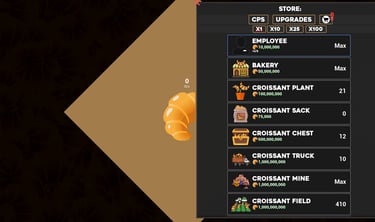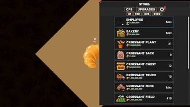 Croissant is a clicker game, click the Croissant to gain even more Croissant and become the best in the leaderboard! By spending time on the game, or by clicking on the Croissant, you can obtain skins. Collect them or trade them to expand your collection.